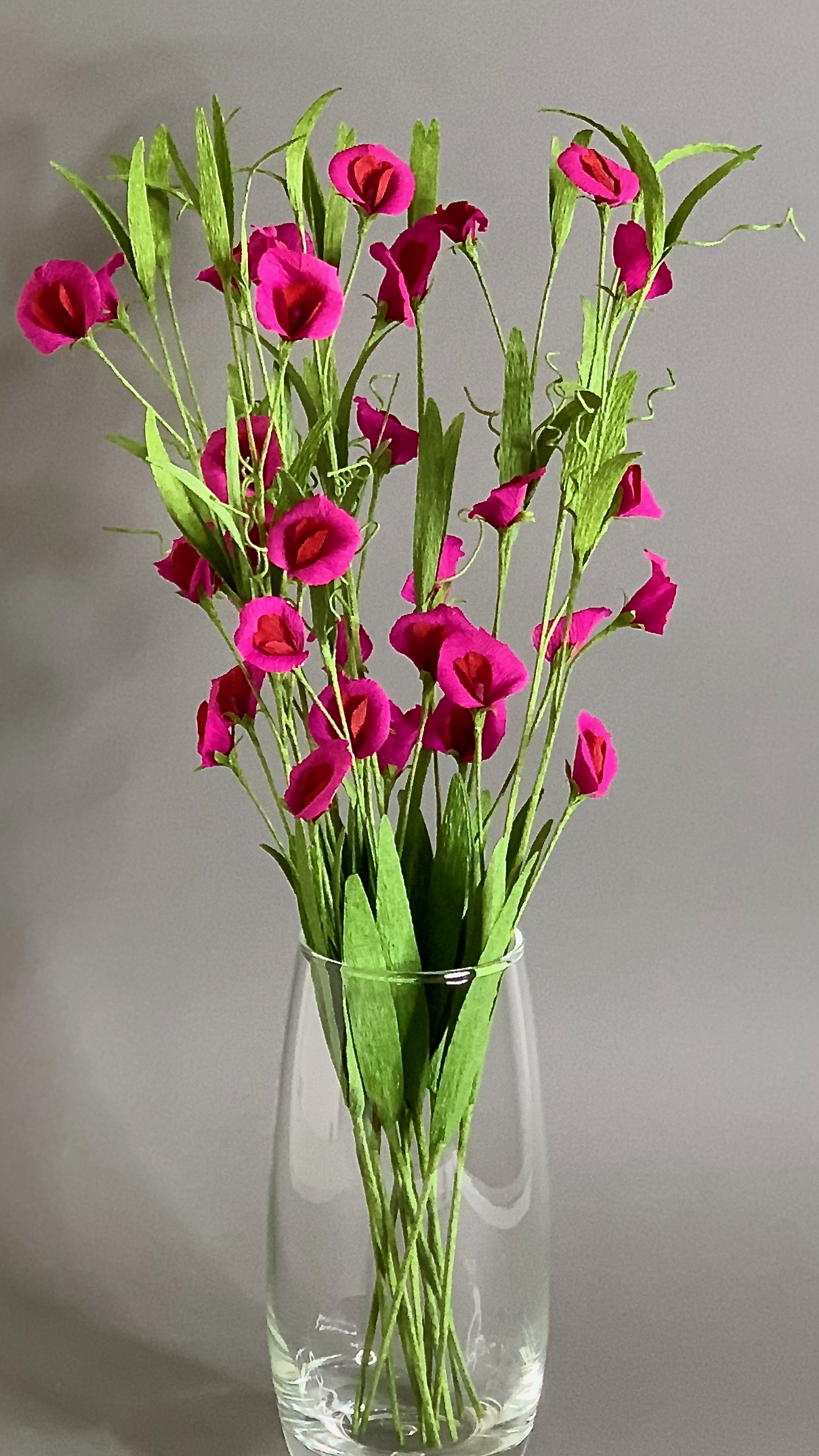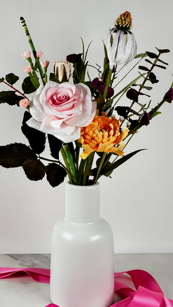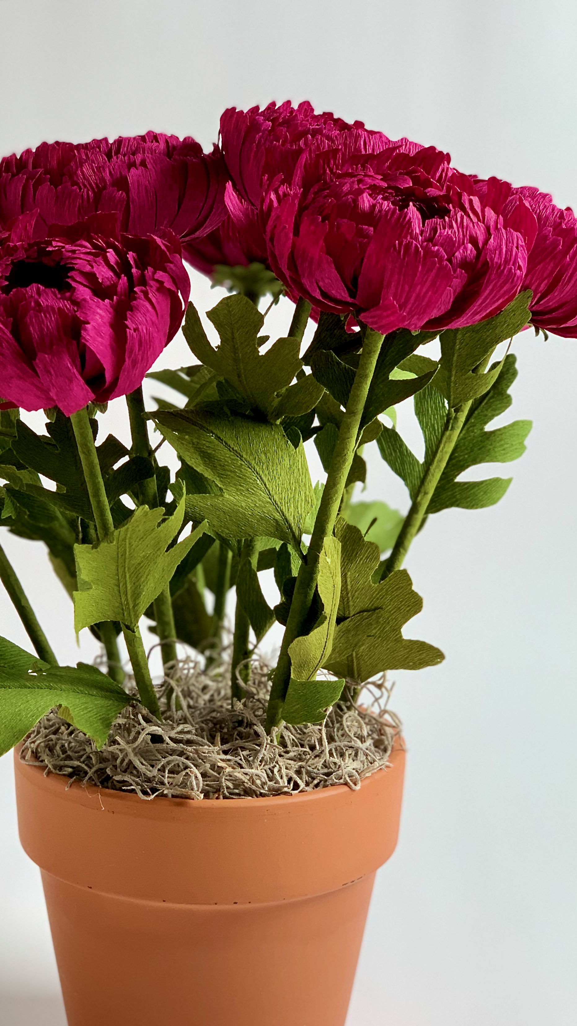 Handcrafted crepe paper flowers and plants—artful botanical pieces inspired by nature and crafted by hand.